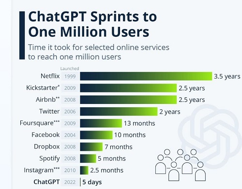 As per the information given by AI itself, the tool ChatGPT has gained one million users in just only five days after launching in November 2022. A conventional AI bot will generate human-like text for all users, from writing stories to coding applications and doing transactions. Microsft has said that multimillion-dollar investment in U.S. Company OpenAI is the makers of ChatGPT.